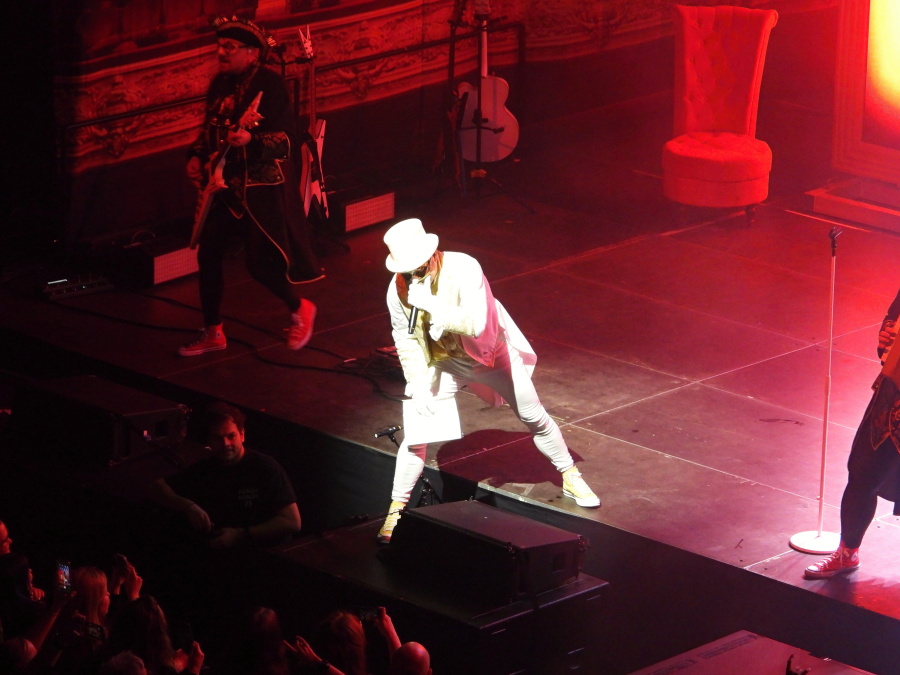 Krátce po šesté hodině vstupujeme do haly. Prodejní stánek kapely je obklopen fanoušky ze všech stran, spodní prostor je doslova nacpaný k prasknutí. Mnozí přicházejí v maskách a škraboškách Panoptika, atmosféra připomíná svátek. Úleva přichází až v horní části haly pro VIP hosty, kde je přece jen o něco víc prostoru – ale i tady je cítit, že se chystá výjimečný večer.